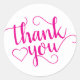 Adesivo Redondo Script Rosa Simples | Magenta Heart Obrigado