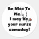 Os adesivos de profissão de enfermeiro com design de estetoscópio dizem: "Seja legal comigo... eu posso ser sua enfermeira um dia!".
