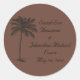 Nossos Stickers and Seals Java Beach Chocolate Getaway apresentados como parte de nossa coleção de destino mostra sua elegância e beleza no simples design de uma palmeira negra contrastada contra um fundo cor-de-chocolate escuro profundo e castanho. Escolha do excelente para coordenar com um destino, praia ou qualquer cerimônia de casamento ao ar livre. O modelo de texto personalizado pode ser usado para inserir o texto escolhido. O estilo e a cor da fonte também podem ser personalizados selecionando o recurso "personalizá-lo".