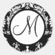 Adesivo Redondo Selo de Casamento do Monograma Preto Damasco