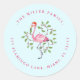 Adesivo Redondo Selo de Endereço de Férias de Aqua e Flamingo Rosa