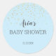 Este Dourado selo de Chá de fraldas Azul de Confetti é perfeito para um chá de fraldas clássico ou borrifo para um bebê. O design apresenta confete dourado falso sobre fundo azul e simples caligrafia de cinza escura. Personalize-o com o nome da futura mãe e do encontro.