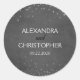 Casal de Casamento e Data Faux Preto Metálico e Folha de Prata Corações Românticas Confetti Envelope Selo-Selo que são perfeitos para uma Recepção de Casamento Moderna e Elegante.Os adesivos de Selo de Envelope personalizados permitem atualizar o nome da noiva e do noivo e a data do casamento.