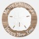 Selo de envelope de Natal em dólar. Lenha rustica marrom com texto branco e curvo para personalizar em dois lugares. Diga "Feliz Natal e Feliz ano novo", de um local tropical. Os autocolantes redondos vêm em dois tamanhos e podem ser usados para selar envelopes. Alterar a forma deste design pode perturbar o texto.