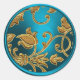 Adesivo Redondo Selo de envelope Dourado e Turquesa Damasco