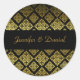 Cartazes de casamento redondos, feitos em cor damasco de tom preto e dourado. Uma faixa preta, ao longo do meio, tem texto de script marrom-ouro. Personalize o texto para ler o que você quer. Excelente como selos para os envelopes de casamento ou como etiquetas de presentes para favores.