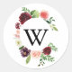 Estes monogramas geométricos cheios são perfeitos para um casamento elegante. O design pintado à mão apresenta folhas verdes, cor-de-rosa deslumbrante, pincelada, púrpura, vermelha, branca e lenhosa, pessoas bem organizadas em pequenos buquês fofos. Personalize as etiquetas com a última inicial da noiva e do noivo.