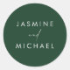 Coloque os envelopes de casamento com estas selas simples e na moda! O design apresenta seus nomes em modernas letras brancas complementadas por um roteiro manuscrito com um fundo verde da floresta. Estes adesivos de casamento verdes são perfeitos para selar envelopes, adicionar favores de casamento, e muito mais!