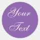 Adesivo Redondo Selos redondos roxos e brancos com texto personali