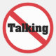 Faça uma declaração contra a poluição sonora e a rudeza com o símbolo universal do "Não", mostrando a mensagem "Sem Conversação" em cima de um círculo vermelho e de uma linha diagonal. Excelente de bibliotecas, salas de aula ou professores com alunos indisciplinados.