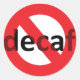 Diga não ao café descafeinado. Parem o café da manhã. Acabar com o café assado. A palavra "descafeinado" é coberta por um símbolo vermelho proibido (círculo com uma linha que a atravessa). Diz "não" ao descafeinado.