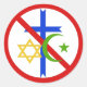 Envie a mensagem de que você não está interessado em nenhuma marca de religião com a familiar barra vermelha com uma cruz, a crescente muçulmana, e a estrela de David.