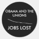 Adesivo Redondo Sem título, OBAMA E OS SINDICATOS, EMPREGO PERDIDO