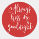 Escrita moderna em pincel "Sempre me beije boa noite" sobre um fundo vermelho que pode ser personalizado para qualquer outra cor.