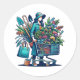 Cartoon de uma senhora com um cheio de carroças comprado de plantas e flores. Se você tem um vício de jardinagem então estes são os seladores de envelopes perfeitos para você.