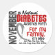 Com seu layout de quadril, texto ousado e fita cinza ao estilo do grafite, esta design de Consciência da Diabetes vai um passo além do que simplesmente relembra a outros que novembro é Mês de Consciência da Diabetes. Ele coloca uma verdadeira face em uma causa muito real, já que você, membro da família de alguém que luta contra o diabetes, avise a outros que, para aqueles que enfrentam as batalhas cotidianas da diabetes, o Mês da Consciência da Diabetes é TODOS os meses. Ideal para personalizar uma causa séria, enquanto traça uma cinza de consciência em qualquer lugar. Somos contribuintes regulares para as instituições de saúde, animais e de beneficência do Darfur.