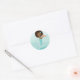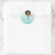 Este adesivo de sereia redonda está em cor de turquesa e rosa. O adesivo é desenhado com uma bela sereia africana-americana com cabelo encaracolado e rabo de peixe turquesa.