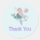 Obrigado, palhaços com uma ilustração adorável. Projetado com uma bonito sereia montando um golfinho feliz. Um pequeno amigo medusa os acompanha. Decorado com pequenos pedaços de ouro falso. Fundo azul claro com bolinhas rosa esmaecidas.