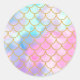 Adesivo Redondo Sereia Escala Pastel Dourada Glitter Pattern Girly