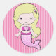 Adesivo Redondo Sereia rosa com palitos de cabelo loiro