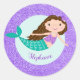 Esses adesivos personalizados da sereia apresentam um design de sereia fofo com brilho púrpura e texto de script. Personalize-o com um nome.