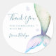 Sereia Tail Aniversário Obrigado Pelos Stickers. Cauda de Sereia de Aquarela em tons de verde-marinho, roxo e azul com sotaques de bolha fofinhos.