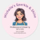 Um adesivo na moda redondo com uma mulher ilustrada moderna em uma paleta rosa macia — perfeito para selar embalagens, etiquetar suprimentos ou adicionar um toque profissional ao seu negócio de limpeza de casa.