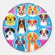 A playful grid of cute, cartoon dog stickers in multiple breeds. Bright, friendly characters ideal for kids crafts, school projects, and playful branding focusing on dogs, friendship, and joy.