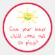 Um raio de sol fofo sorri sobre a citação "O seu filho interior pode sair para brincar?" escrita no estilo crayon sequestra.