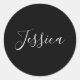 Adesivo Redondo Seu nome | Script branco elegante em preto