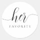 Adesivo de Favorito dela com caligrafia moderna para Saco de Boas-Vindas de Casamento. O design apresenta um layout de texto com estilo de letra manuscrita moderna. Para fazer alterações avançadas, selecione a opção "Clique para personalizar ainda mais" em Personalizar este modelo.