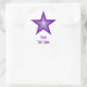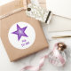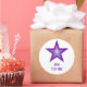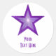 Adesivo redondo 'Seu texto' com estrela roxa branc