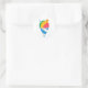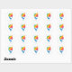 Um gelo giro com cores arco-íris, palha e colher-pau em um cone de listras azul e branca em um adesivo branco redondo. Um adesivo de excelente para favores de aniversário ou convites para selar!