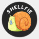 Adesivo Redondo Shellfie Funny Snail Selfie Pun Dark BG