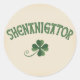 Um Shenanigator é um instigador de Shenanigans. Texto verde com shamrock, em t-shirts, cartas, troca de presentes novidade.