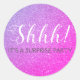 Shhh! Festa de aniversário surpresa, cor-de-rosa e brilho de óculos roxos e adesivo de aniversariante. A Festa de aniversário Surpresa usa a popular tipografia moderna. Entre em contato com o designer para obter itens correspondentes.