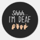Adesivo Redondo Shhh, sou surdo, linguagem de sinais ASL