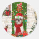 Shih Tzu Dog Natal sentado do lado de fora de casa decorada com coroa de Natal, árvore de Natal é uma ideia perfeita de presente de Natal para amantes de cachorros.