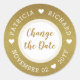 Elegante mude os adesivos de data com um quadro de brilho dourado.Personalize com nomes de noiva e noiva e nova data de casamento. Adicione a mudança de adesivos de selo ao seu envelope adiado de cartão de anúncio do casamento. Os selos de envelope podem ser usados para compartilhar sua mudança de planos no casamento, noivado, chá de panela, chá de fraldas, data de celebração da festa.