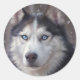 Esta pintura digital representa um Husky Siberiano sobre a neve, seu pelo brilhando com realces gelados enquanto a paisagem de inverno se estende infinitamente atrás dela. Os olhos expressivos do cão chamam a atenção do espectador.