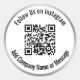 Você pode substituir a imagem de exibição pelo seu código QR. Há linhas de texto de exibição em preto que você pode editar para mostrar uma mensagem personalizada (Mostrada: siga-nos no Instagram Adicionar Nome ou Mensagem da Empresa). Este adesivo elegante é branco com uma borda de prata falsa (e não em folha).
