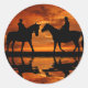 Adesivo Redondo Silhub de cowboy escalador do Sunset Ocidental