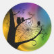 Adesivo Redondo Silhueta de corujas em palitos de árvores