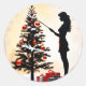 Adesivo Redondo Silhueta feminina com árvore de Natal decorada