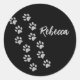 Adesivo Redondo Silver Dog Paws black Background Print Pattern