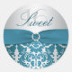 Adesivo Redondo Silver e Teal Damask Sweet Six Sticker