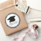 Personalized silver glitter class of 2023 graduation round stickers featuring a grad cap. You'll be able to personalize with the graduate's name. Please note there is no actual glitter on the stickers, but a design.