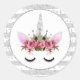 Adesivo Redondo Silver Glitter Unicorn Princesa