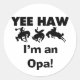 Yee Haw Eu sou uma camiseta Opa, canecas, cartões, adesivos, botões de anúncio, keepsakes opa, e outros presentes opa com um cavalo de entrelaçamento e design de texto preto ou branco. Estes itens de roupa de opa e presentes são perfeitos para avós pela primeira vez ou opas temperadas de uma nova chegada!