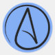 Adesivo Redondo Símbolo ateu: preto sobre azul claro